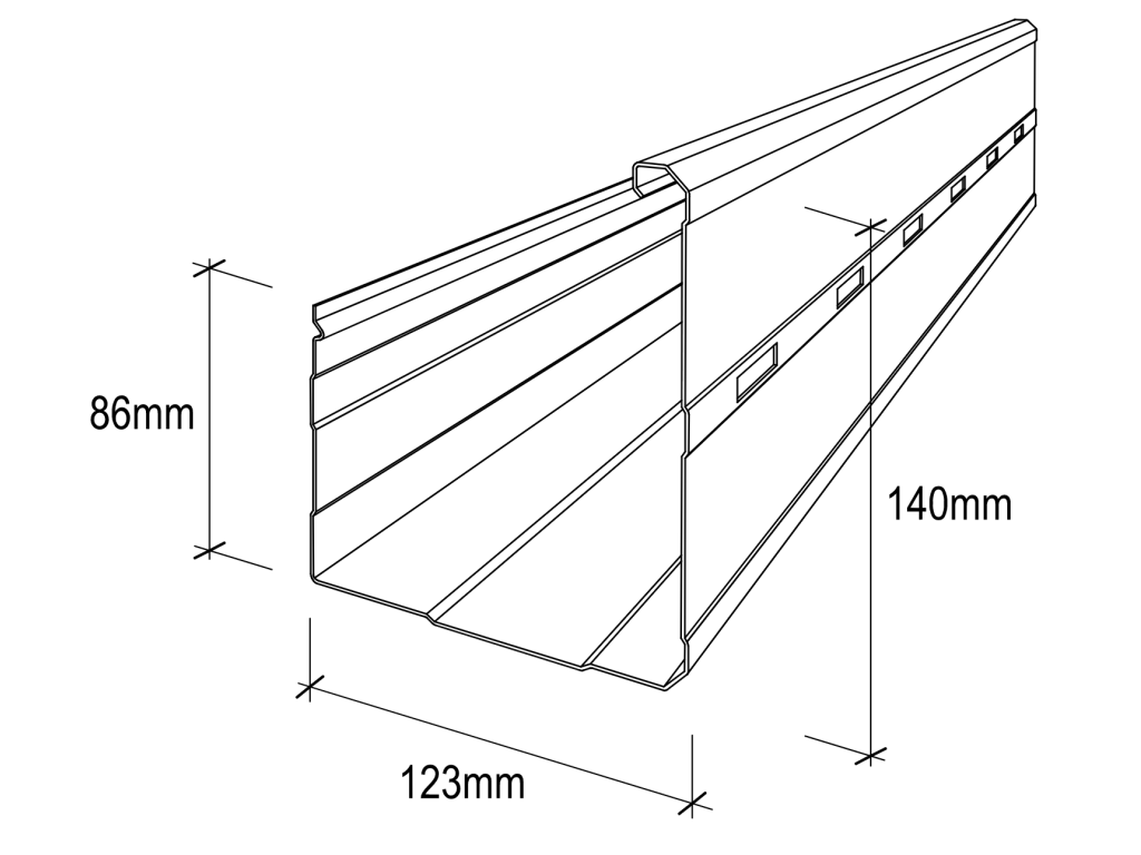 Stramit® Square Gutters coated with Zinc-Aluminium / Zinc-Aluminium-Magnesium alloy and COLORBOND® steel will give excellent durability in almost all locations more than 200m from a marine environment or in some light industrial applications.